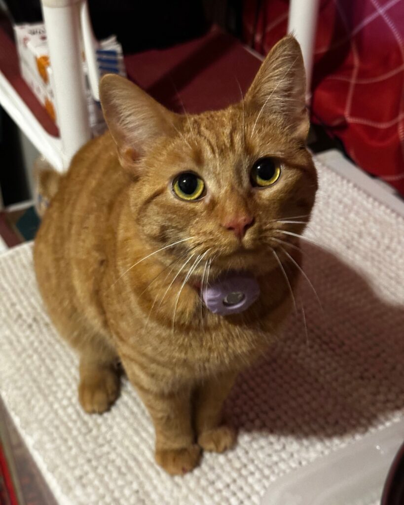 Johnny is chatty in the best way. Sweet commentary, gentle opinions, never loud, never demanding. He is affectionate, deeply bonded to his person, and fully harness trained, which feels extremely on brand for a cat named Johnny Cash. He is the kind of companion who wants to be near you, with you, and very clearly chooses you every day.